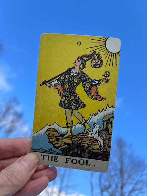 After feeding horses from the Caves of Lascaux and mucking their last night's stall while petals of snow fell over an Abenaki dawn, I ate a bowl a wood stove beans— buttery, small and green—and threw myself into the dry ancient sea waters of the Iapetus Ocean, crying crystals of salt tears. The Fool and their little dog rhymed a ditty that this breakfast tastes like the stanza of an epic poem woven by millions of years upon thousands of lifetimes. Ours but a lopsided stitch in the zero of beginning again.